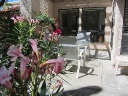 There is a private outdoor patio at the back with